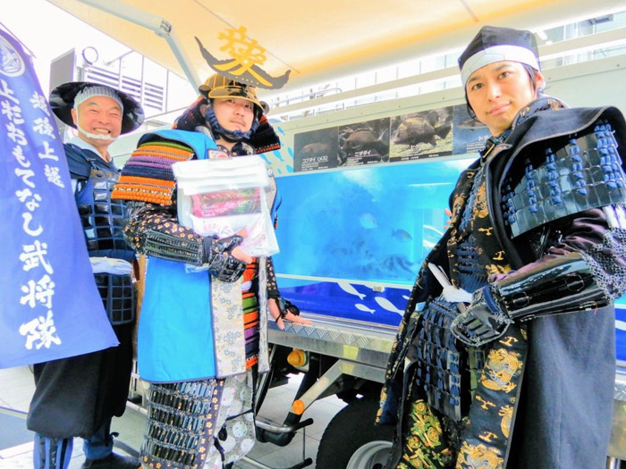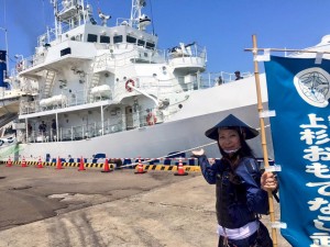 「特別警備隊長」上杉景勝、「海の安全大使」つばめとして任命され、おもてなしに出陣したことがあったが
