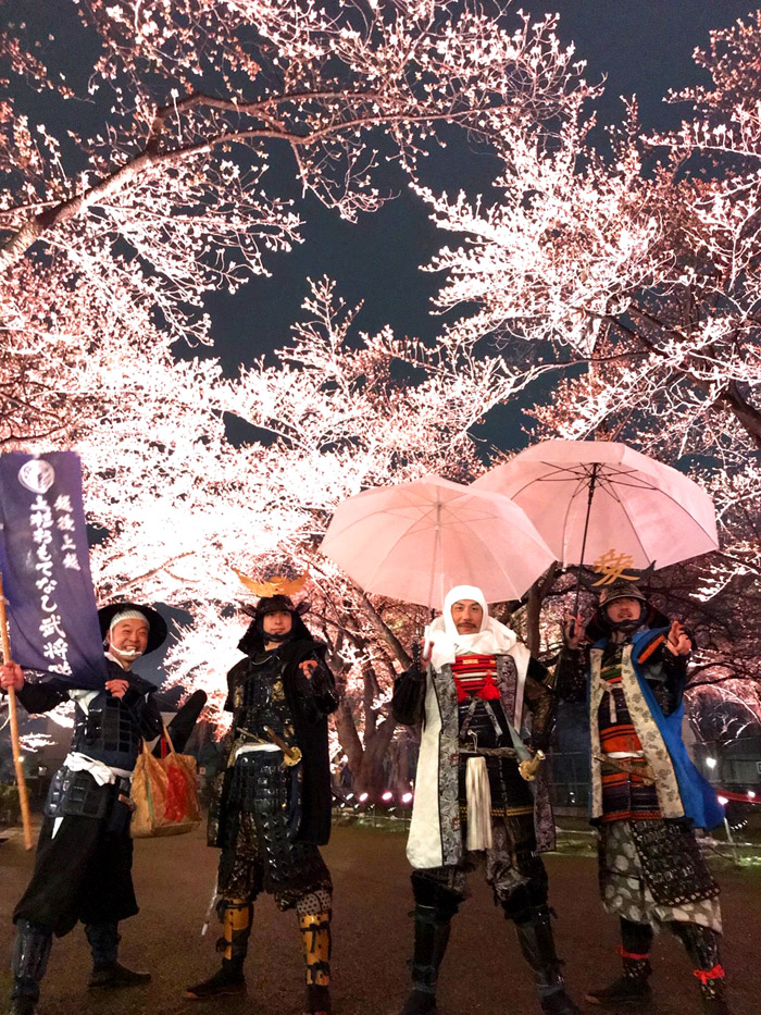 関東の花見は暖かくてよいのぅ~…。越後のこの季節はまだ寒いからな…。