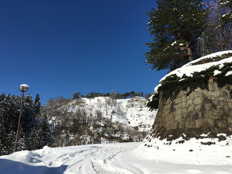 冬季期間も春日山城跡にお越し下さるお客様から、春日山城跡の雪の状態についてお問合せがあるため、冬季期間上杉おもてなし武将隊が定期的に雪の状態を写真でご案内致します。