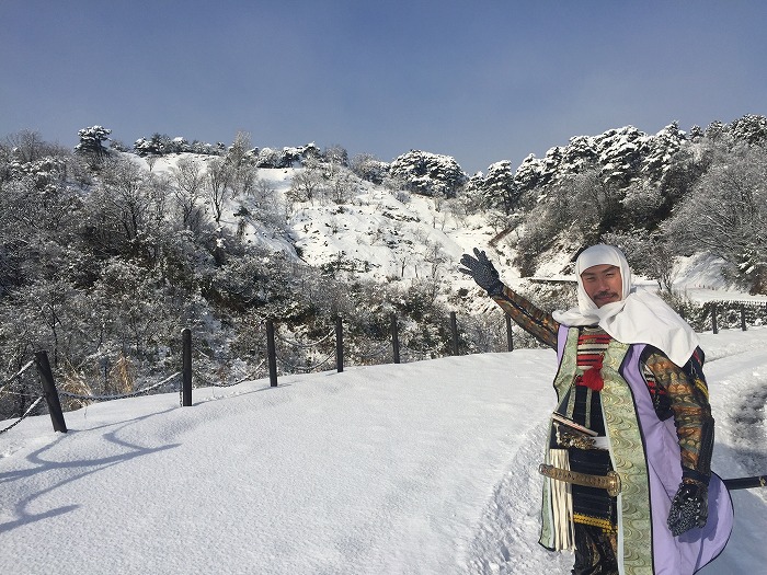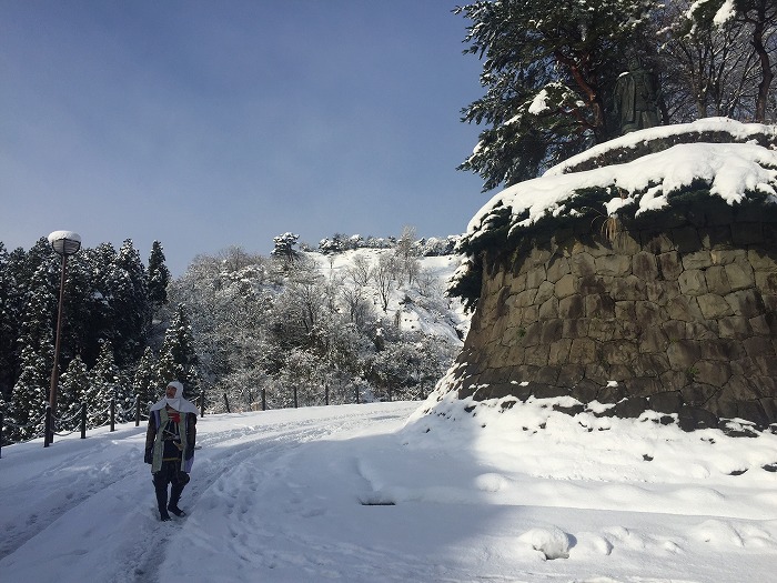 冬季期間も春日山城跡にお越し下さるお客様から、春日山城跡の雪の状態についてお問合せがあるため、冬季期間上杉おもてなし武将隊が定期的に雪の状態を写真でご案内致します。