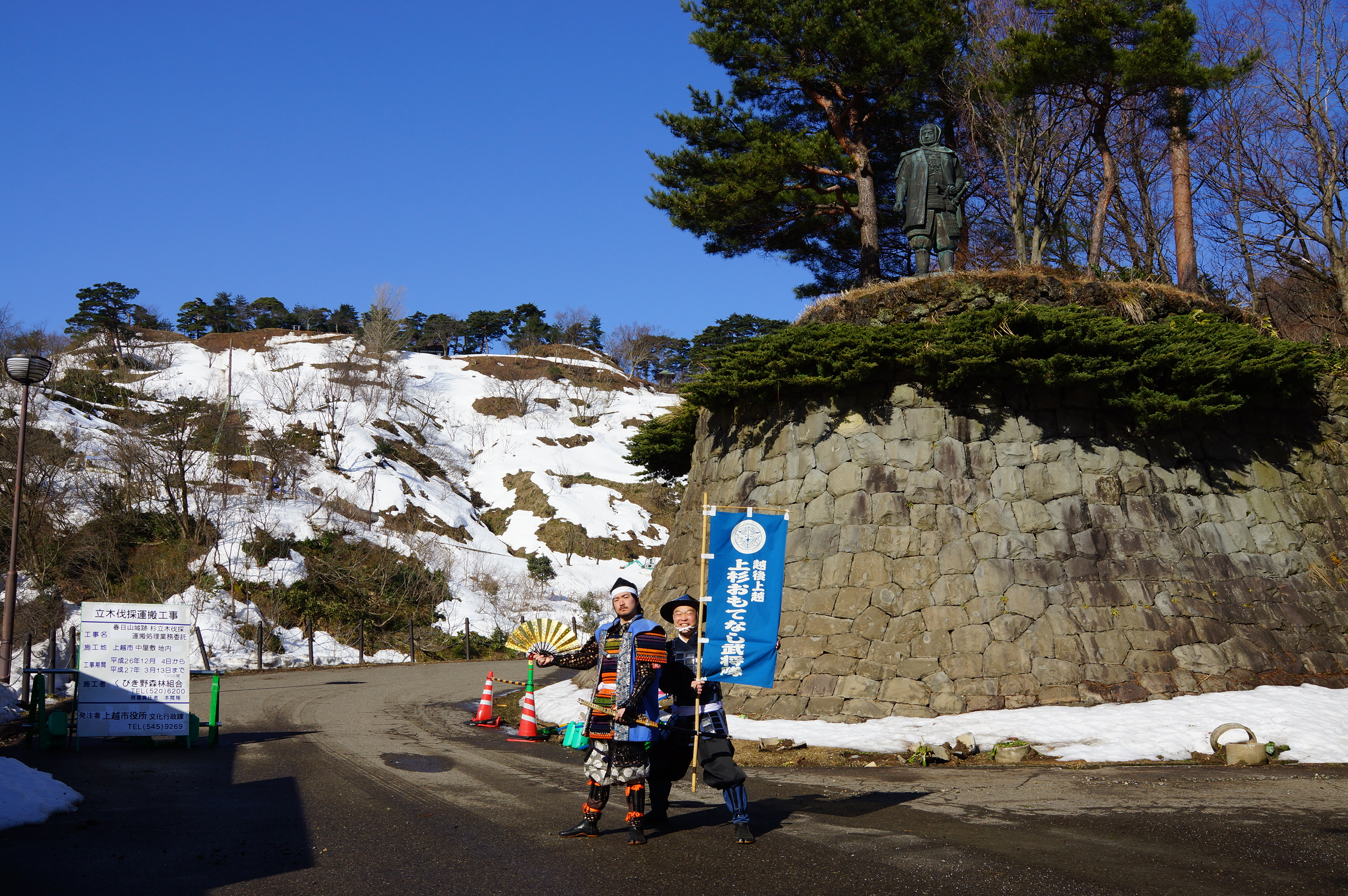 冬季期間も春日山城跡にお越し下さるお客様から、春日山城跡の雪の状態についてお問合せがあるため、冬季期間上杉おもてなし武将隊が定期的に雪の状態を写真でご案内致します。
