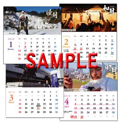 この度、武将隊キャラクター2018年(平成30年)版の卓上カレンダーの発売が決定しましたのでご案内いたします。