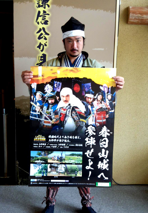 春日山城跡への観光誘致を目的として制作された越後上越 上杉おもてなし武将隊の市内掲示用ポスターを謙信公祭・大物産市で限定50枚で販売致します。