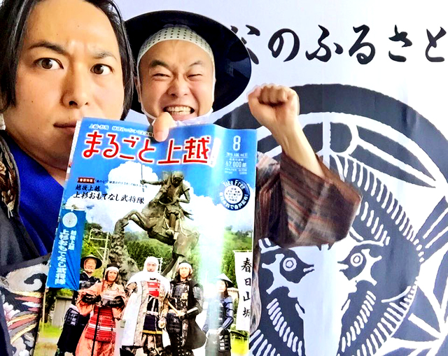 地域みっちゃく生活情報誌「まるごと上越!」8月号に表紙ならびに巻頭特集として武将隊が掲載されました。