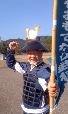 大きな大きな声で、元気な笑顔を届けることが(届けられるように…)我らが「義の戦」…。「越後上越上杉おもてなし武将隊」、お館様方にお仕えしておりまする足軽組頭、十吾郎にござりますっ!