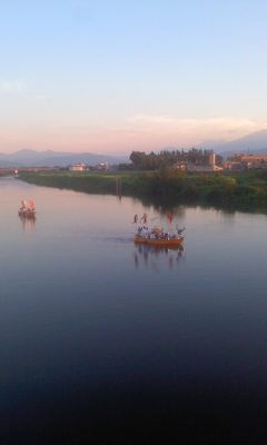 十「大合唱と言えば今年も凄い熱気でした…。八坂さんの御神輿さまが明かりを灯した19町内の屋台、迎え囃子に花火のなか還御され、いよいよ上越まつりは直江津祇園祭が始まりました。川下りは永き歴史で途絶えた時期や現世では堰が設けられているため高田は稲田橋の袂から御座船に乗った御神輿さまは陸路輸送の間もありまするが、再び着水し関川河口で水揚げされ神事を…。」