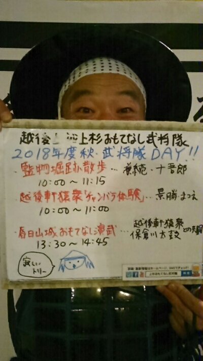 ※足軽つばめは、姉妹都市の静岡市で義の戦(本日まで)!我らが本隊は、降雪前最終・春日山城おもてなし演武!大感謝を込めての゛武将隊DAY!