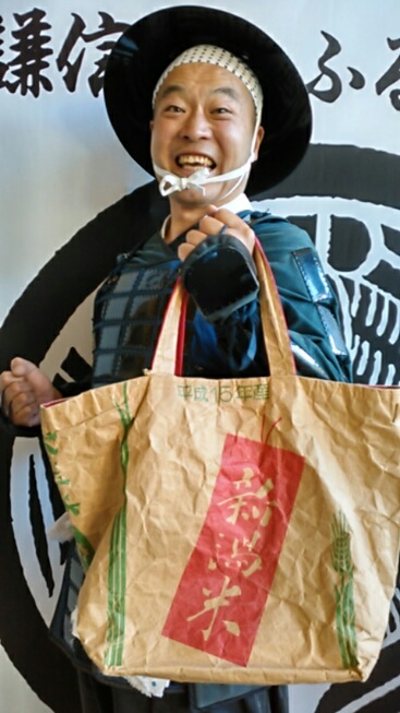 「ワン、ワン、ワンダフル~な頸城平野、日本海の眺望も楽しんでくださりませ~(汗)!春日山の西、日本海沿いの゛たにはま公園には無料のドッグランが整備されています。丘の上からの眺望も最高です~!さて、母の日に関連して袋物の日!とのこと…。ここ数年、拙者が愛用しているのが、王国ならではの米袋を活かした手さげ袋です!文字も目を引くことから地元の方からも声を掛けていただいています。あっ、袋小路に陥陥らぬよう、真っ直ぐ義の戦に邁進いたしまする~」