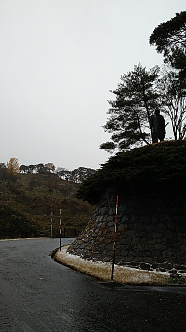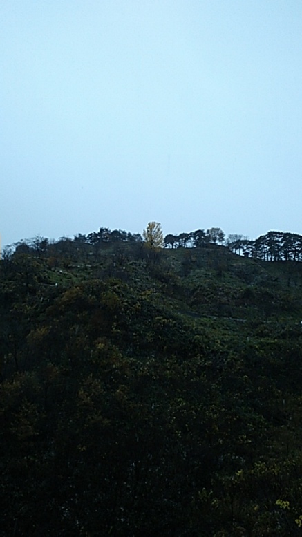 まだまだ、一本大イチョウは元気です!昨日は(昼の画像)、霙混じりの冷たい雨、一時、雪になりました…。暗くなって来た夕方、うっすらと白化粧した山肌に黄色い笑顔!いつも元気をもらっています~!十吾郎(礼)