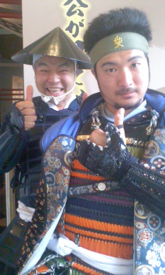 我らが兼続様にご協力いただきました「いいよ〜っ!」の合図…。奥方さま、殿方さまより笑顔いっぱいで頂戴しました〜