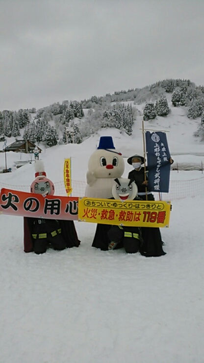 「昨日は、119番の日!火の元も気を付けましょう。あっ!住宅用火災警報器を知らせるキャラクター!ジュウケーレンジャーさま方にお会いしました。安塚区のスキー場!雪だるま高原キューピットバレイさんでのこと。はいっ!我ら越後上越上杉おもてなし武将隊!武将隊チャンネルYouTubeの企画!アクティブスポーツ鍛練部!撮影時の遭遇でした。動画もお楽しみにです~!拙者のそり遊びは入っていませぬが、苦笑いはいっぱい滑っていますです~(汗)!」