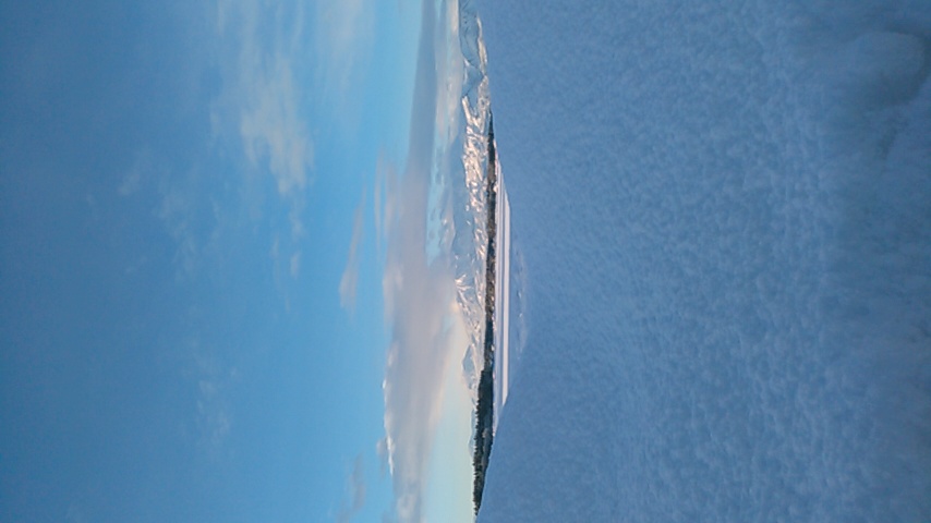 『口軽足軽のガラ携でも嬉しき朝焼けや朝の青い空と白の世界はきれいに見えるの~(苦笑)!』