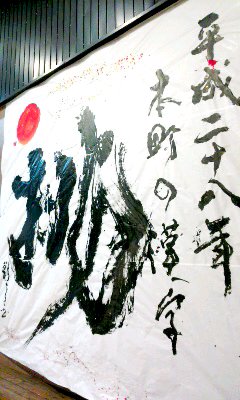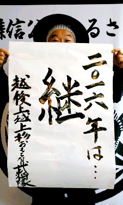 「あっ、その感じではなく、漢字にござりました〜(汗)!城下町高田の本町商店街をあらわす今年の漢字は¨挑¨と発表されました。PRアイドル¨がんぎっこさんが全国大会へ挑戦、日ノ本一とされる直線コースを設定したミニ四駆大会の開催、越後・謙信SAKEまつりでの試み、等々から選ばれたとのこと…。」