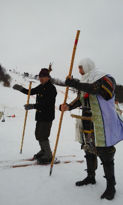 「(追記)黙って、いやいや、いつも以上に元気な声で盛り上げさせていただきまする、第6回ごんぞ飛ばし世界選手権大会〜!もちろん、口や手を使わずに、藁で編んだ深靴¨ごんぞを遠くに飛ばして参りまする〜(汗)」
