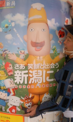 十吾郎「お館様〜遠路お疲れさまにござりましたっ!鉄道博物館さまにて「うまさぎっしり新潟」の大きな催しはいかがでござりましたかっ!今月の「うまさぎっしり新潟」のポスタ〜は、レルヒさんを筆頭に、ゆるキャラ大集合です!我らが「上越忠義隊けんけんず」さまの隣に〜小さく拙者も載っておりまする〜」