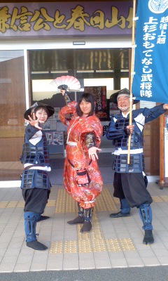 十「お館様方と行き違いになりましたが、埼玉からのお客さまもおられました…。中には、小さな姫さまが我らの写真を見て『この人〜イケメ〜ン!』と、景勝様を見て話されておりました〜」