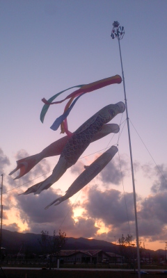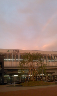 「いろいろな、色を感じて、豊なる…。」※鯉のぼりさんが元気に泳いでいた上越妙高駅に虹がかかりました~