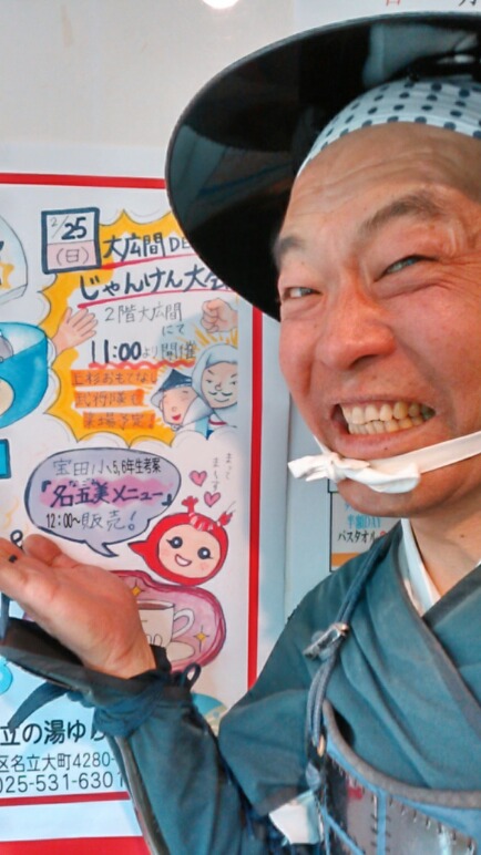「口軽はさておき、本日は゛みやげの日とのこと…。我らがふるさと越後は新潟県上越市!手軽にお土産物を求めるならばこちらがお勧めです!北陸自動車道は上越IC降りて直ぐの上越観光物産センター、開業三周年を迎えまする我らが上越妙高駅のSAKURAプラザ、道の駅は、キューピットバレイ(スキー場)有する安塚の゛雪だるま物産館、観光酒蔵の゛よしかわ杜氏の郷、そして、日本海沿いの゛うみてらす名立!あっ、先日もお世話になりました゛うみてらす名立さんの感謝月間の広告に゛笑顔の拙者が素敵に描かれていたのでありまする~」