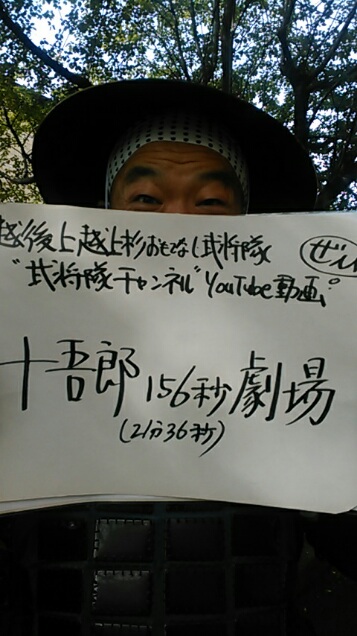 『何事も身を持って体験し伝えて参れ~!十吾郎156秒劇場!武将隊チャンネルYouTubeの企画!きかく、しかく、口軽足軽の笑顔は、まんまる~(褒め倒し)!』