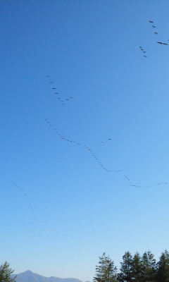 「あっ、拙者の七色の声〜はさておき(汗)!出陣先でも渡り鳥さんの群れに出会す機会がありました…。鵜の浜温泉を有する大潟区は¨まさに野鳥の聖地とされる朝日池の近くで大型のガンの仲間¨オオヒシクイだったかと…。はたまた、こちらは種は分かりませんでしたが、上越市の観光PR〜でお世話になりました信州は松代城址でも…。その渡り鳥さんたちの声にござりまする〜!」