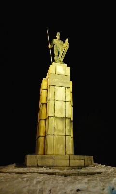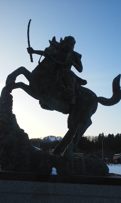 「いよいよ来週末は、日本スキー発祥106周年レルヒ祭¨大開催にござりまする〜!昨夜から金谷山スキー場のレルヒ少佐銅像がライトアップ〜!冷えた空気に♪ばりっばりっばりっと¨しまった雪を踏む音だけが響きます。寒さが応えるはずが詩人は時を忘れ佇む…。あ〜小説、いやいや小雪ですが雪国の冬、ありがとうござりまする〜」