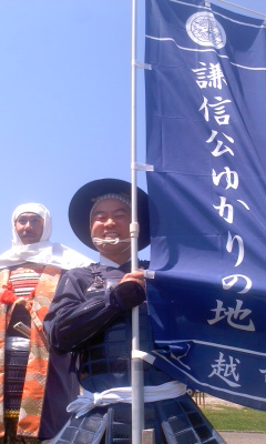 「我らが甦りし三周年記念の明日を皮切りに黄金週間最終日まで、春日山周辺は鉄馬の乗り入れ自粛にご協力をお願いし、本陣「謙信公と春日山城展」絶賛開催中の埋蔵文化財センターより無料巡回バスをご活用いただきたいですっ!」