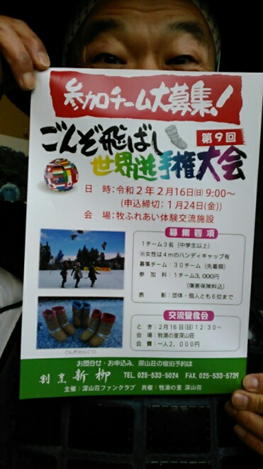 「先ずは本日!山里の牧区で第9回ごんぞ飛ばし世界選手権大会!大開催です!昨年、団体優勝の我ら武将隊(画像は予選敗退の第7回)!今年は、いかに!あっ、ピ、ピンチヒッタ~で拙者も参陣します~(大汗嬉)!」
