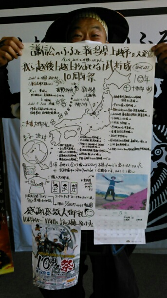 「ありがとうござりまする。この4月29日の10周年記念日には、兼続様、妹の女武者みつ、そして、足軽の(足軽組頭と新聞記事にありましたが!汗)つばめが限定復活!雨天順延となった10周年祭は5月1日に浦川原区の保倉川太鼓さま、越後軒猿衆さまを迎えて開催することが出来ました。夜には、日ノ本各地の武将隊さまからあたたかいお言葉をいただいた動画を公開!はたまた、10周年記念Tシャツも作ってもらいました。足軽装束の畳鎧の上から着て、ふ、普通の口軽でした~(汗)!」