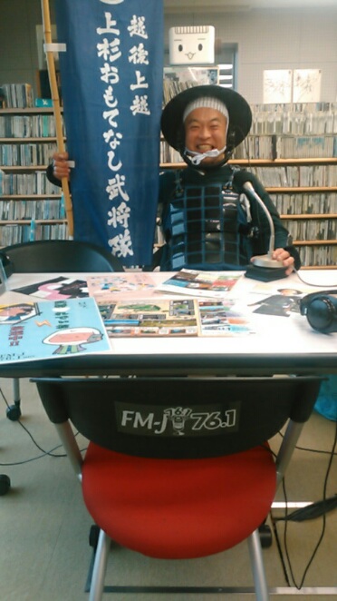 FM―Jすまいるカフェ・武将れでぃお!城下町高田は゛雁木通りプラザから公開生放送です!13時15分過ぎ、此度の゛遠くに生電話を~!は、上越市の姉妹都市、静岡市の清水区につながせていただきまする。中学生さんによる交歓会のお話しも聴けまするかな~!十吾郎(礼)