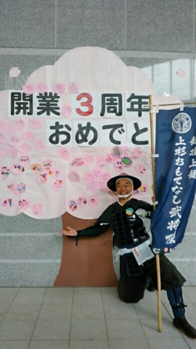 西口降りて直ぐのコンテナ複合商業施設゛フルサットさんで本日、上越妙高駅開業三周年を祝いし催し大開催!いいお天気になりそうです~!十吾郎(礼)