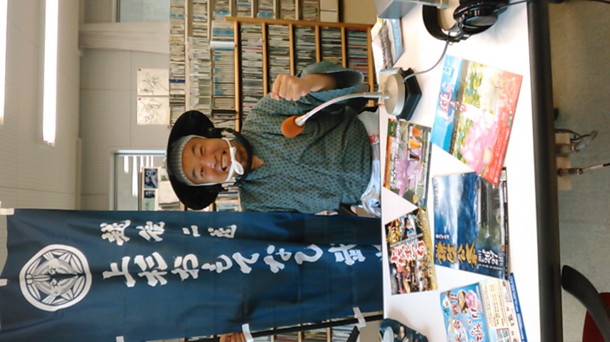 「謙信公物語、大好評ラジオドラマ(第2弾、第1話、第2話)でお世話になっておりまする、おとなり妙高市のFM局さまも、お昼に生中継で我らが本陣に!謙信公祭の大大大宣伝です~」