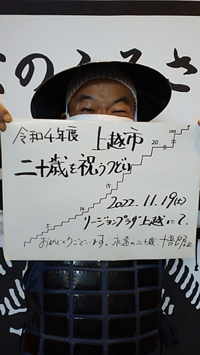 「足して進めば思いはつながりまする~!さて、本日は゛同窓会の日!第3土曜日は三連休になることが多いことから毎月19日を゛同窓会の日!と制定したそうです…。まさに本日です。我らがふるさと越後は新潟県上越市!リージョンプラザ上越を会場に、令和4年度゛二十歳を祝うつどいが執り行われまする。昨年は、入口でお出迎えを、出立時に近況や抱負や夢など主張を聞かせていただきました。さて、今年は…。永遠の二十歳の拙者も楽しみです~」