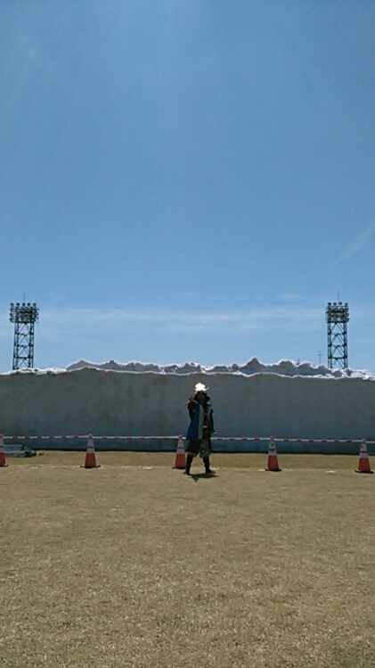 「昨日は青い空に桜の笑顔が映えましたな~!第94回高田城百万人観桜会!本日も、お花見バスの降り口すぐには、上越市立水族博物館うみがたりの活魚車による移動水族館が!そして、ほんに雪壁でした。スクリーンにして映る越後上越の美しさが!交通規制もありまする。お気を付けて、よき日曜日に~」