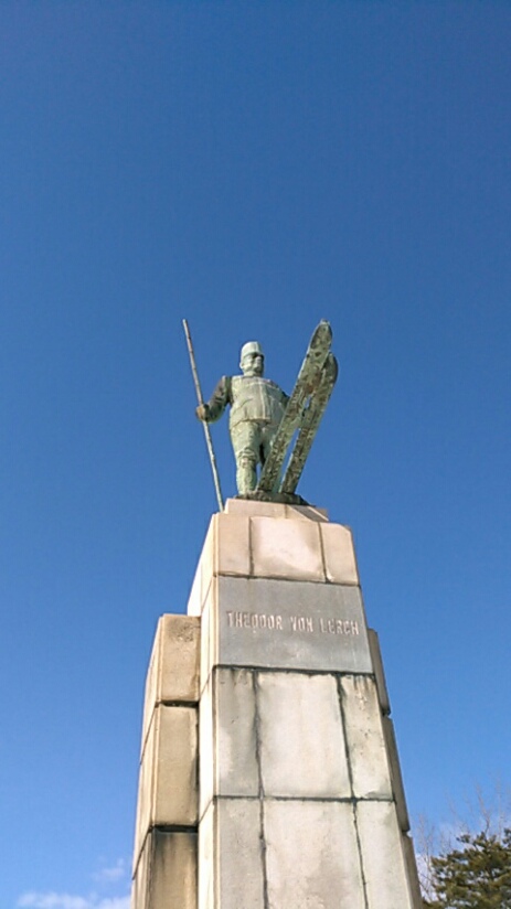 ※日本スキー発祥110周年レルヒ祭!会場の金谷山スキー場!初日は、白い雪と青春いっぱいの青い空にお子たちの歓声!二日目は、生憎の雨となりましたが、一本杖スキー術を伝えたレルヒ少佐の銅像がライトアップされた前で我ら武将隊が!楽しき時でした~!武将隊チャンネルYouTubeをご覧くださりませ~!十吾郎(御礼)