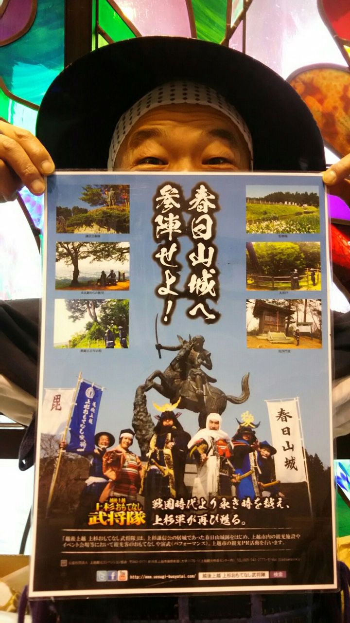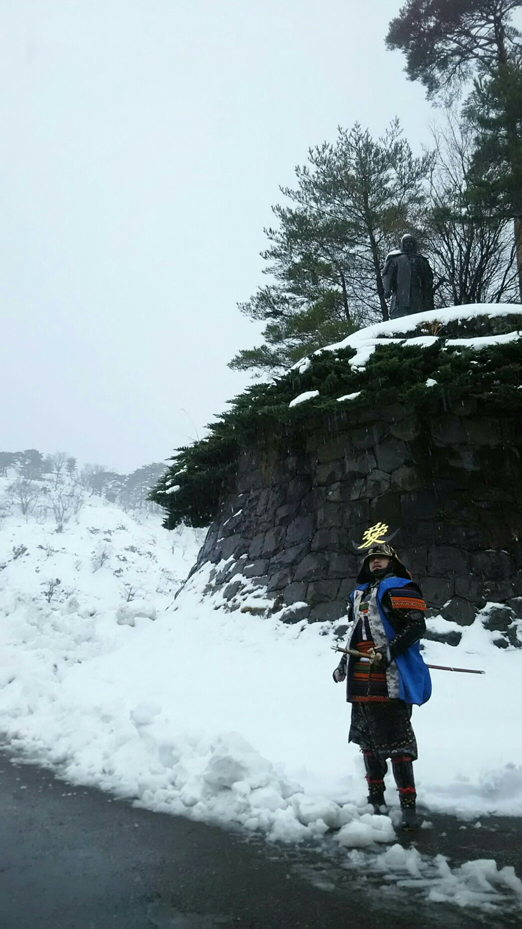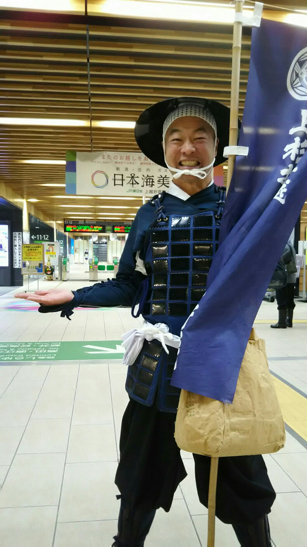 「義の戦始めの昨日も足下の悪い中ありがとうござりました…。春日山の麓、上越市埋蔵文化財センターの無料の企画展゛謙信公と春日山城展!我らが本陣は本日から再開です。加えて、毎年恒例の上越市新年祝賀会のお出迎えにリージョンプラザ上越に参陣いたしまする~」