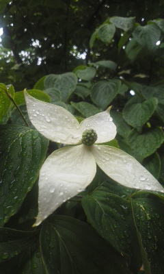 「さすがに付いて来てくださりませぬな…。笑う門には福来る!健康にも笑いはいいと言われまするのに〜(汗)!我らが¨ふるさと越後は新潟県上越市、山里に自生する、また、庭木としても親しまれていますミズキ科のヤマボウシ(山法師)が見ごろを迎えておりまする…。ちと検索なる秘技で調べて見ますと、手裏剣のような形の白い四枚は花びらではないのですが、四方を照らす意味合いもあるようで、さらに嬉しくなりました〜」