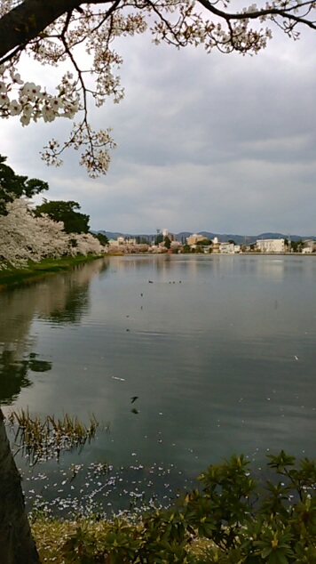 ※留鳥の鴨が羽を休め、帰ってきたツバメが巣作りの準備…(画像)。恋の季節の鯉、甲羅干しする亀…。ぼんぼりが映り幻想的な高田公園の外堀は生き物たちが元気いっぱいです~!十吾郎(礼)