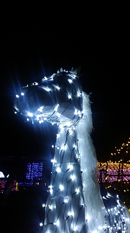 ※白鳥さんたち渡り鳥の聖地、大潟区の朝日池、鵜の池(かっぱ伝説)からほど近く、柿崎区は坂田池の湖畔にイルミネーション!今年はバージョンアップ~しています!灯りも大好き十吾郎(礼)