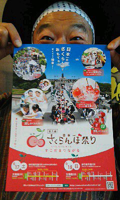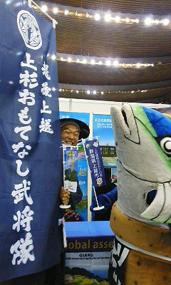 ※お館様方は本日、山形市の「日本一さくらんぼ祭り」に!!拙者は昨日に引き続き、佐渡島のブリカツくん、たらい舟娘さんと共に長野市の「大人の文化祭」に参陣です〜十吾郎(礼)