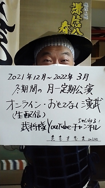 ※我ら越後上越上杉おもてなし武将隊!本日は、2021年最終となる゛月一定期公演にござりまする!そして、武将隊YouTubeチャンネルの企画!十吾郎156秒劇場!第25弾を公開してもらいました!まさに、ニコニコ十吾郎です~(汗)!十吾郎(礼)