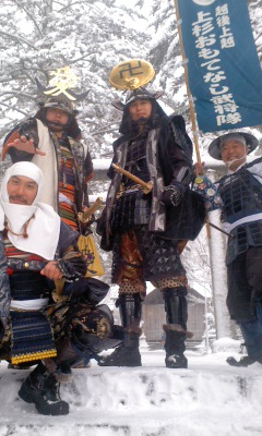 正月早々武将隊の皆様に再会出来、演武なども見れ、記念写真も撮って頂き、謙信公、及び兼続公のお勧めのお土産も買えて最高でした。あの十吾郎様からクイズのご褒美にいただいたお餅は後日お汁粉にでもして食べようと思います。