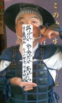 大きな大きな声で、元気な笑顔をお届けいたします(のつもりで…)、初陣以来一年と八ヶ月、二年目の新春を迎えることが出来ました、みなみなさまに感謝、感謝、感謝、足軽組頭、十吾郎にござりまするっ!