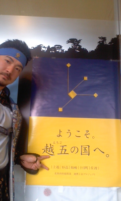 十「新駅を玄関口とする越後は上越、妙高、柏崎、十日町、佐渡の五市が共闘し¨越五の国¨として大宣伝会を展開〜!公式サイトなる情報戦略をぜひ毎日ご覧になって欲しいですっ!越五の国¨みなさまが¨開業までのカウントダウン¨を得意技を駆使し表現されています。我ら武将隊もいよいよ出番ですよ〜」