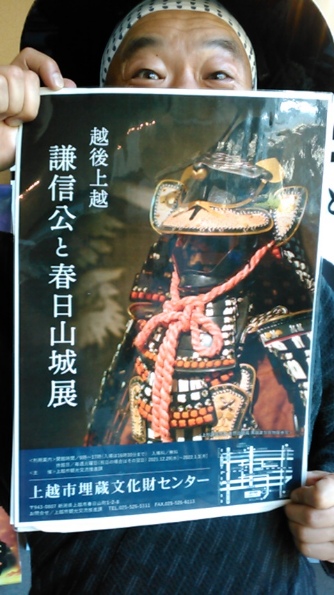 「無料の企画展!謙信公と春日山城展゛開催中の我らが本陣!春日山の麓、上越市埋蔵文化センターは毎週火曜が休館日です~(汗)!さて、久方ぶりに月曜日の出陣!本日は、語呂合わせから゛徒歩の日!何だそうです…。これまた拙者、鉄馬、鉄籠が欠かせませぬが、秋晴れの一日!ゆ~ったり散歩もいいですな~!あっ!キンモクセイのいいにおい。秋風に香りに癒されまする~」