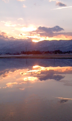 と言うことで、初日の出に代わってこちらを〜(あっ、す、すみません。白鳥さんや渡り鳥に優しい、耕うん後に水をはったままのたん水田に雪山が写り込む〜ゆ、夕焼け〜)