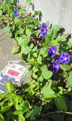 十「ちょっと違いまするが(汗)、お館様¨謙信公が居城、春日山の麓、我らが本陣、上越市埋蔵文化財センターに朝顔が咲きました。エコと言われる¨グリーンカーテンの取り組みで、飛んだ種が根付き石の上から顔を出し地面を這いながらの、まさに¨ど根性朝顔さんです。関東甲信まで梅雨入りしたと発表されましたが、我らが¨ふるさと越後は新潟県上越市はまだです。小雪だった今年は水不足が心配、農作物にとっても、まとまった雨が欲しいところにござりまする。」