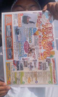 十「佐渡おけさ¨を踊れない足軽はさておき(汗)、景勝様の佐渡平定から四百数年…。本日は、佐渡汽船乗り場を中心に¨直江津港フェスティバル大開催にござりまする〜!うんまぃもん大集結はもとより、直江津から高速船¨あかね¨で渡る佐渡島は小木の名物¨たらい舟体験、レプリカなれど足軽もはまりました¨金塊つかみ取り体験、事前申し込みですが、普段は入れない港・埠頭・火力発電所の見学会、そして本日も我ら上杉軍の軒猿衆が殺陣の披露を…。直江津駅を起点に無料巡回鉄籠もありまする。」
