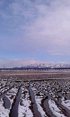 山を見ると少しづつ雪が消えているような。雪解けの様子が写っているのかな?