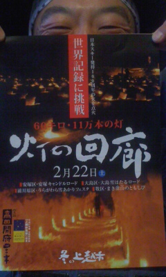 十「来週末はいよいよ、世界記録に挑戦〜とされる、雪深い山里の夜を照らす、キャンドルロードや雪ほたる、ほんに幻想的な「灯の回廊」開催〜にござりまするっ!」