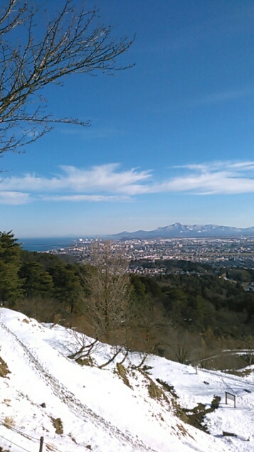 「雪を被り青い空に映える春日山!その麓、我らが本陣、上越市埋蔵文化財センターで絶賛開催中の企画展゛謙信公と春日山城展を!!そして、春の観桜会が待ち遠しい゛高田城址は高田公園!上越市立歴史博物館の常設展を!ぜひとも~」